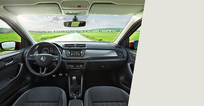The colour black dominates the interior of the ŠKODA FABIA MONTE CARLO; it is used for the ceiling and pillars. These features are also available for the Dynamic package.